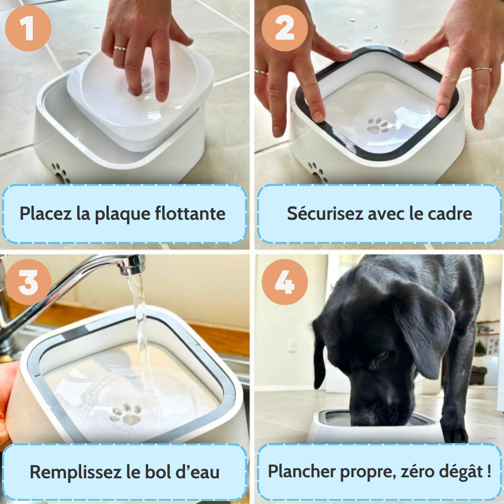 Vous éviterez ainsi les museaux trempés qui laissent des traces d’eau partout sur votre plancher.